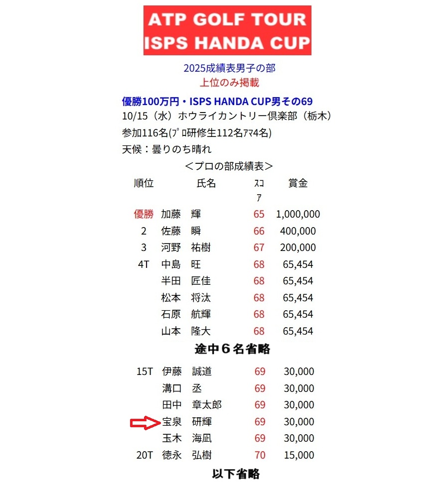 <2025年10月15日(水)ISPS HANDA CUP 男その69>